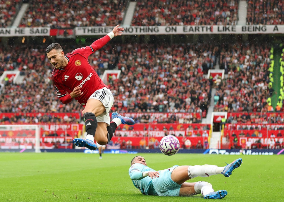 第20分钟芒特带球突入禁区摔倒,主裁判吹罚点球,但是在回看VAR后取消了此前的判罚,狂攻不止的曼联,在第26分钟打破场上平衡,卡塞米罗禁区内的头球击中横梁,皮球反弹到防守球员身上后入网,靠着对手的乌龙,红魔在主场取得了1-0的领先,半场结束前,芒特大禁区内的回头望月击中横梁出了底线。